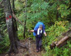 ●ヒエ平登山口から常念乗越までは天気にも恵まれず、時より小雨交じりの中を歩くこととなった。山行きのテント泊も久しぶりで、また、最後の水場で水を5.5リットルも汲んだことから、ザックも重くいつも以上に足腰に負担がかかったようだ。しかしながら、午後から天気は急速に回復し、テント場からの常念岳や槍ケ岳の雄姿を眺めた途端、身体の疲れが一気に吹き飛んでしまった。