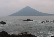 ●山頂登頂後は、暫しの休憩の後、足早に下山し長崎鼻に立ち寄り開聞岳全景を瞼に納めた。その後は指宿にて砂風呂(料金900円)で汗を流す。それからは鹿児島湾に沿った国道を経て鹿児島市内に戻り再度宿泊する。