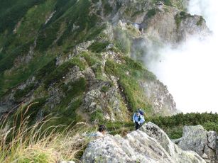 ●本日も、御来光以外は各山頂全てガスっており、山頂からの眺望は昨日同様今ひとつ。今まで数回縦走を経験しているが今回は初めての体験である。