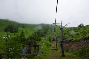 ●初日から出鼻をくじかれた結果となってしまったが、時間に余裕があったのでこれに懲りずに中央アルプス方面の「霧ヶ峰(車山)」へと行き先を変更することとなる。なお、この山は八島ヶ原湿原から出発するのが代表的なコースであるが、雨が降り続いていたので迷わず「車山眺望リフト」を利用となる。これまでに幾つもの日本百名山を登頂してきたが、これまでで一番最短の行程時間(約45分)での山頂の踏破となる。また、裸足のスリッパ履きの軽装で些か観光気分であることは否めないが、内容はともあれ何とか日本百名山の登頂の目的を果たす。