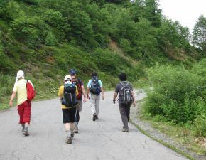 ●旧火口内にある遊歩道を暫く歩き遊歩道の最高地点に到着したが、山頂へと向かう道がないとのことで、ここで小休止の後に駐車場へと引き返すこととなる。流石に復路はリフトを使うことがなかったが、遊歩道を一気に下山し駐車場へと戻り今年の夏季研修協議会での山行きを全て終了する。