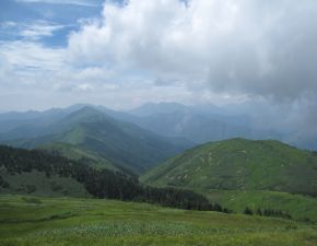 ●今年の夏季研修協議会の2日目は、南魚沼市にある日本百名山の巻機山へ向かうこととなった。宿泊地の「大厳寺高原キャンプ場」から、国道403・253・291号等を経て約2時間車を走らせ、同じ南魚沼市にある最寄りの桜坂駐車場へと向かう。なお、この山への登頂コースは複数あるのだが、天狗尾根コースやヌクビ沢コースは滑落等の危険が伴うと言うことで、今回は井戸尾根コースをピストンする行程となる。