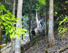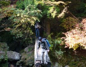 ●山頂では辺りの山々の眺望を楽しみ、また、昼食と充分な休憩を摂ったものの、下山時にルートを間違えたことからさらに疲労が蓄積することとなる。樹林の中の急斜面で足を滑らせなから下り、何とか無事に地図にある谷道のルートに合流し事なきを得る。結局、帰りのバスの時間に遅れることもなく、また遭難するのではと肝を冷やしながらも、ほぼコースタイムどおりに下山を終える。