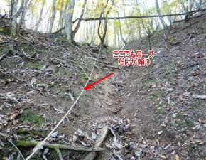 樹林内の急斜面を