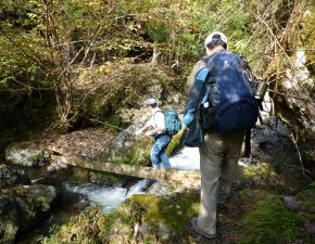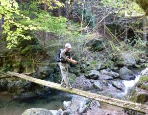 で沢を横断する