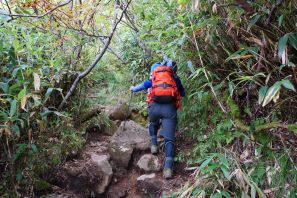 ●山頂からの下山は当初は燕登山道を引き返す予定だったが、クサリ場を避けたいとの思いからメンバー全員一致で燕新道を下山することとなる。しかしながら、いきなりの急勾配の道を下ったことから、思いの外体力を消耗し小休止の回数も増え想定した以上に時間がかかってしまう結果となってしまった。何はともあれ無事に燕温泉バス停までの下山を終え今回の遠征での山行きを終える。