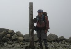 ●剣ケ峰口からの登山道は、距離も短くそれほど急勾配では無かったが、標高が高いためか時々息苦しくなった。山頂はガスが立ち込め付近の山々の眺望を楽しむことが出来なかった。また、場所も狭く続々と登山者が登頂してくるので足早に撤収する。