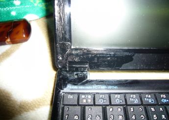 ●今思うと無謀だったが、天板にラッカースプレーを吹き付け補修を試みるも、状況は更に悪化しキーボード周囲のプラスチック部等がシンナーの成分で溶け出し、また液晶の一部にシミができ挙げ句の果てには液晶パネルも割れてしまう。更に、部品取り用に下位機種を別にオークションで落札し、傷んだパーツの取替を行おうと思ったが、パーツは外観は同じでもネジの位置や取付等が微妙に違い取り替えするができず、結局、本体を分解し動作確認をせずに、使えそうなパーツを別々に出品することとなった。