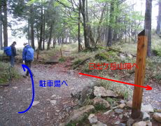 ●当初の予定では、大峰山脈を一望するこのコース最大の見どころである大蛇ーに立ち寄り西大台登山口へと戻るコースだったが、天気の回復も望める状況でなかったので、尾鷲辻で中道コースを経て大台山頂駐車場へ戻ることとなる。行程的にはやや物足りなかった様に感じたが、今回のメンバーがどちらも山行きが久しぶりだったことから、結果的に良かったかもしれない。