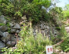●和田日向守齋頼が1516年に築城したと伝えられているが、その後豊臣秀吉の命で廃城となり1596年に破却されている。現在は、石垣の跡?があり瓦の破片もいくつか見つけることができた。