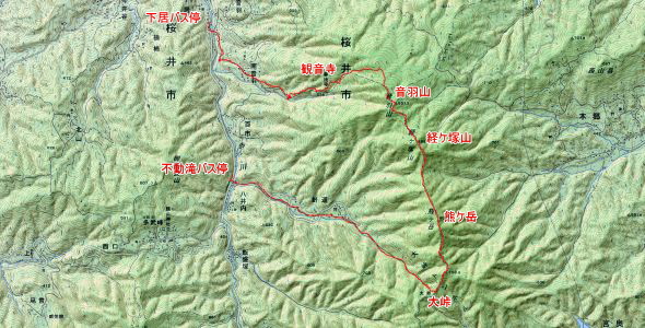 経ヶ塚山(889m)(休憩)→熊ヶ岳(昼食)→大峠→不動滝バス停