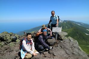 ●この山は、山の地図では標高差が約1,430mで、所要時間が往路が4時間55分、復路が3時間25分、計8時間20分で今協議会で最長時間の行程であったが、天候に恵まれたことと事前の訓練のお陰からか?、休憩時間を含めても大きく遅れることもなくこの日の行程を無難にこなす結果となった。また、道中では羅臼平からの山頂や山頂からの国後島とオホーツク海の絶景を十分に堪能できたことから、疲れも一気に吹き飛んだようだった。
