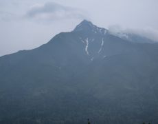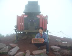 ●往路の道中は強風が吹き荒れ、また濃いガスにも覆われ視界の悪い状況が続く中、髪の毛をビショビショに濡らしながら山頂を目指す。このコースの最大の難所である九合目の正念場で息も上がり、身体はヘトヘトとなりながらも何とか予定の時間より早くに利尻山頂(北峰)に到着する。なお、この山の最高峰は南峰となっているが、大変危険なため立ち入り禁止となっている。