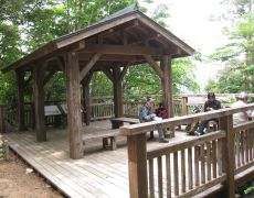 ●一軒茶屋で小休止してから六甲最高峰までは再び舗装道となる。天気も曇り気味で、山頂では神戸港方面等の眺望を楽しむことができなかった。しかしながら、登頂客が多かったのだがここで昼食を取り下山に向けて鋭気を養うこととなる。その後は、芦有ドライブウェイの車道を暫く歩き、途中六甲全山縦走路の分岐を左に折れ宝塚方面へと向かう。