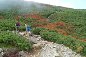 ●今回の山行き遠征の最終日は、前日と同様に長野と山梨の県境にある日本百名山の仙丈ヶ岳の山頂を目指すこととなる。前日の甲斐駒ケ岳の登頂では、コースタイムから大きく後れを取り、メンバー皆疲労が蓄積したコンディションであったが、当初の予定より早く出発できたことと天気もまずまずだったことや足慣らしができたこともあって、下山のバスの発車時間に遅れることもなく無事にこなすこととなる。