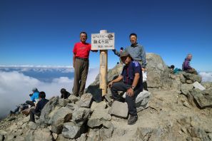 ●この日も山頂では辺りの山々はガスがかかった状況であったことから、山頂の南東側に日本百名山最高峰の富士山やその次の北岳などの山頂を眺めることはできなかったが、道中に前日に登頂を果たした甲斐駒ヶ岳、また、彼方にある北アルプスの槍ヶ岳並びに穂高連峰を眺めることができたので、内容的には問題はなかったと感じているところである。