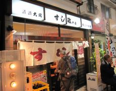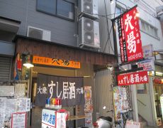 ●先に紹介した「穴場 天満店」から通りの向かいにこのお店はある。このお店はカウンターのみで椅子はなく、表題の如く「立ち呑み」となった。 ●このお店の一品のメニューは幾つかあったようだったが、当方もホロ酔い状態となってしまったことから、残念ながらハッキリと覚えていない。なお、地酒が数種揃っていたので「土佐鶴」2杯と他の地酒(記憶なし)を嗜むこととなった。 ●前のお店のにぎり寿司とここの地酒で、当方もお連れさん2人とも満腹と言うことで、今回の「JR大阪環状線天満駅」界隈の散策はここでお開きとなる。 |