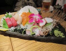 | 刺身の盛合せなどで お連れさんの偉業? を盛大に祝う |