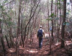 ●当初の予定では、旧山下城があった城山に登頂する予定だったのが、登る稜線を間違えスルーしてしまうこととなる。今回同行した「トクさん」は城跡を探索できず非常に残念がっていた。その後は、一庫ダム湖の「知明湖」沿いの旧山下道を歩くが、雑木に覆われ眺めることができなかった。また、ここは様々な道が交差し、地図とハンディGPS並びに過去に歩いた登山者が付けたテープ等の印を頼りに進むこととなるが、下の車道を走る車の音が常に響いていたのであまり不安は感じなかった。