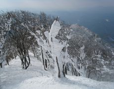 ●高見山頂付近にはブナ林が残り、冬場にはその枝に雪が着氷し霧氷として見事な景観を呈している。今年は年が明けしばらく寒い日が続いたことから期待をして山頂に向かったが、当日は殆ど風もなくまた寒さも想像した程でもなかったので、霧氷の出来は今ひとつのようだった。お連れさん曰く4年前に登頂したときと比べると、5〜6割程度の満足度らしい。