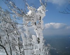 ●しかしながら、4年前とは違い寒さは我慢できる状況だったので、山頂に20分程居ることができ付近の山々の眺望を楽しむことができたので、当方は満足しているところである。ちなみに4年前は霧氷は美しかったが寒さに我慢できず、山頂に5分も居ることができなかったことが思い出される。