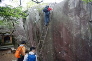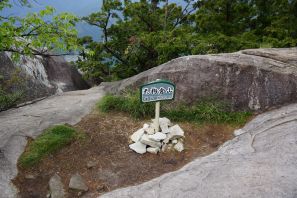 ●この日も山行きでの行程は約3kmと短い行程だったが、この山は山頂に近づくにつれ登山道の勾配ががきつくなったことから、内容的には十分であったようだ。なお、当初は山頂からさらに足を伸ばし外洋の眺望の良い「オチョボ岩」へと向かう予定だったが、雨粒がぱらつく状況だったので途中で断念し下山することとなる。