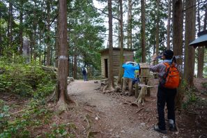 ●今回の遠征の2日目は、車で足を伸ばし三重県尾鷲市にある天狗倉山へと向かうこととなる。なお、この山の最寄り口は過去に登頂した「便石山」の際に利用した馬越公園駐車場か、国道42号線沿いにある旧海山町の登山口が主であるが、この日は午後から雨模様との天気予報だったので、行程の短縮のため尾鷲トンネルを抜け林道を車で走り、熊野古道との分岐からの出発となった。