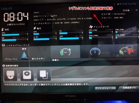 FANスピードも1,000RPM以下で静音化