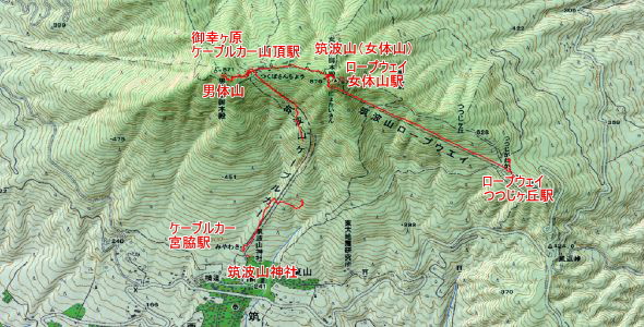 ロープウェイつつじヶ丘駅→ロープウェイ女体山駅→筑波山(女体山)(877m)→