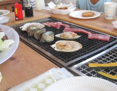 ●「エル・パーク・おおい」での見学の後は、荷捌場へと戻り釣り大会の表彰式を終え、あかぐり海釣公園へと向かいここで昼食となる。豪勢な海鮮バーベキューで疲れた身体とお腹?を癒し、その後は観光バスで旅館に戻り夕方まで休息と取り、夜の行程に備えることとなる。