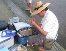●当方、海釣り用の竿は一応所有しているのだが、釣りが久しぶりで仕掛けなどが今ひとつよく解らないので、今回はお連れさんに全てお任せとなる。やがて出港の時間を迎え、期待と不安の中漁船でポイントへと向かう。
