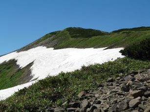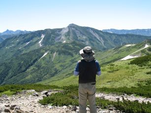 ●それにしても、今回の縦走メンバーのリーダーは凄い体力の持ち主である。年齢が50歳代なのに、テント・缶ビール(350ml24本)を持ち、また、雪渓を見つけたらレジ袋を取り出し詰め込むなど感心しきりである。当方、今回のメンバーの中では最年少であるが、代わりにリーダーのザックを背負う気は全くない。