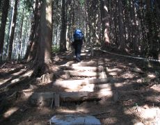 ●ダイヤモンドトレールの歩き出しは、いきなりの急登な下りと登り返し。これまでとは勝手が違い30分ほどで早々に小休止する。徐々に身体も慣れ岩橋山、平石峠を経て竹内峠に到着する。このコースは基本的には下り道であるが、ダイヤモンドトレールは、全区間アップダウンが多い道でそれが醍醐味のようだ。なお、国道166号(旧竹内街道)との交差地点に東屋があったのでここで昼食を取る。