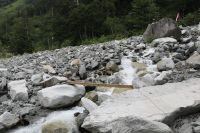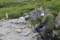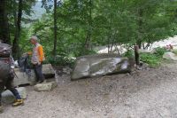 勾配の緩い蒲田川右俣林道だったが疲れからここで最後の小休止。