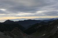 日の出後の南アルプス及び富士山方面を望む。