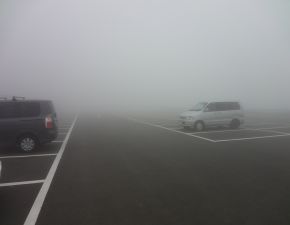 ●前日の反省会後に荷物の整理をほぼ済まし、午前3時30分に起床し午前4時に宿泊地の「鳥海高原家族旅行村」を出発する。山形道を東進し国道112号と東北中央道、蔵王エコーラインと蔵王ハイラインを経て、最寄りの刈田岳山頂駐車場に到着する。この日の朝方も前日と同様天候に恵まれなかったが、駐車場で簡単な身支度を行い山頂に向け出発する。