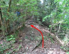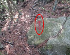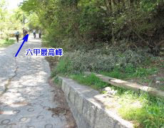 ●やや見切り発車的ではあったが、展望台から瑞宝寺谷西尾根方面へと向かう。登り始めは急登でまた微かな踏み跡?だけが頼りだったが、やがて尾根らしき場所に到着してからはペンキ跡があり、道幅は狭いが道の状態は安定してきたのでそのまま先へと進む。尾根のピークあたりで小休止を取り、携帯したGPSで六甲最高峰方面へ向かっていることを確認しながら、東六甲縦走路分岐の車道に何とか到着する。