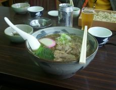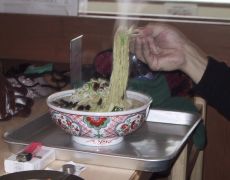 ●メンバーが食した肉そばは、地鶏を使って野菜や鶏肉を煮込んだ温かい汁のそばであった。この地方では、温かい汁は「鳥そば」、冷たい汁は「肉そば」と区別しているようだ。