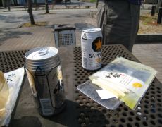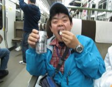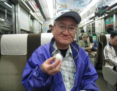 ●電車に乗車して間もなく恒例の「スナックJR」が始まった。今回は、缶ビールだけでなくJR敦賀駅で調達した地酒と名物の「鯖寿司」とおまけで貰った「天津甘栗」と「さきいか」で、豪勢な二次会となってしまった