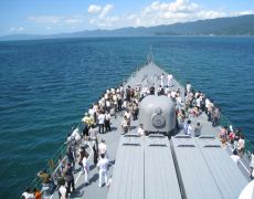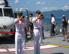 ●敦賀港を出港し帰港までの約2時間敦賀湾を周遊する。当方、護衛艦の乗艦や体験航海するのは勿論初めてで、また、今後においても護衛艦での航海の体験はなかなできないであろう。体験航海の後半は、暑さでややバテ気味となってしまったが今回貴重な体験をさせていただいたものと感じている。