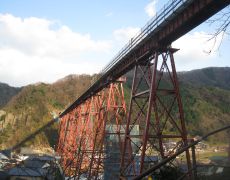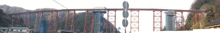 ●鉄橋完成から90年を超えた現在に至っても、単線トレッスル式鉄橋としては日本最大(概要は下記のとおり)であり、日本の鉄道初期の建築物として歴史的価値が大きいようだ。1986年の列車転落事故を契機にコンクリート橋の架け替えが検討され、現在工事が進められている。工事完了後の鉄橋の撤去か保存するのかは議論が分かれているようだ。