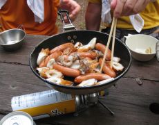 ●前日と同様ここで連泊、今夜の夕食メニューはカレー鍋となる。この時期は、市販のカレー鍋の素(ダシ)がなくカレールウとうどんスープで適当に味を調えたのだが非常に好評だったようだ。また、終盤にはうどんを入れカレーうどん、更にメンバーの行動食の残りのおにぎりを入れカレー雑炊を食すなど、食材費3,072円であったがかなりのボリュームだったように思える。