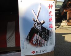 ●ここで若干の時間的余裕があったので、折角なので住吉大社で参拝をすることとなる。今回偶々であったが、昨日に住吉大社で20年に一度の「式年遷宮」が執り行われた直後とあって、太鼓橋上で巫女さんによる神楽の舞?を観ることができ、ここでも運が良かったと感じたところである。
