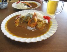 朝食は海鮮カレー