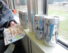 ●朝自宅を出発したときは快晴だったのだが、道中段々と雲行きを怪しくなる。米原駅でお連れさんに言われるがままに缶ビールを調達し、この時は行き先も解らぬまま敦賀駅行きの電車に乗車する。この区間では、乗客も多く優先座席での乗車となったため、恒例の「スナックJR」は先へとお預けとなる。