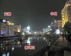 ●ホテルで軽く小休止した後に、午後7時から情報雑誌を片手に今回ツアーの最大の目的である博多の繁華街「中州」と「天神」へと向かう。博多駅から博多駅前通りを歩き、最初は繁華街界隈の目印である複合ショッピングモール「キャナルシティ」を目指す。ここから那珂川沿いの屋台を散策し「もつ鍋」を食すためお店を探す。国道202号国体道路を歩いているときにたまたま見つけた「居酒屋 まる家」で「もつ鍋」を食す。このお店は持参した情報誌には掲載されていなかったが、当方のペンネーム「まるやさん」と同じで愛着?があったかも知れない。