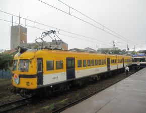 ●現在一畑電車が運行している車両は、今回現地での乗車と雲州平田駅にある車両基地で確認したところ、計10編成で内訳は京王電鉄から譲渡された2100系(2両編成×4編成)と5000系(2両編成×4本)、並びに南海電鉄から譲渡された3000系(旧南海こうや号)(2両編成×4本)であるようだ。