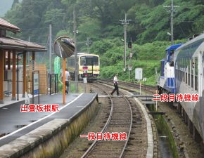 ●先に紹介した三井野原駅から出雲坂根駅の6.4kmの間には、日本で3箇所?(熊本県豊肥本線の立野駅と神奈川県箱根登山鉄道の大平台駅)しかないスイッチバックが設置されている。なお、三井野原駅の標高は731mで出雲坂根駅の標高が564mとなっており、標高差が167mもありかなりの急勾配区間となっている。また、付近にはこれも先に紹介した「奥出雲おろちループ」もあることから、車でここへ訪れる観光客も多いようだ。