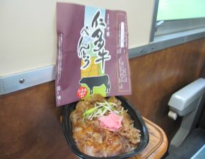 ●往路は降雨のため予定のトロッコ車両に乗車することはできなかったが、予備車両の客車内でご当地の駅弁「仁多牛べんとう」とアイスクリームを食す。また、夏休みの繁忙期ではなかったせいか、乗客も5名程でゆったりとした列車の旅を満喫する。