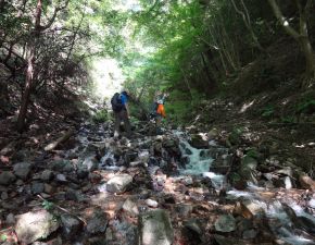 ●恒例の夏山遠征を直前に控え、当方はこの5月から2か月ぶりの山行きとなる。なお、今回はお連れさんの「テルさん」のプランニングで、表六甲の西山谷の沢沿いを歩くこととなった。